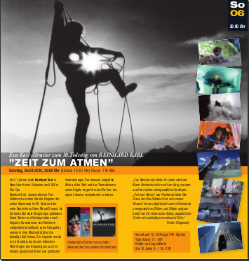 Speziell am 6.4. wird Eva Karl-Altmeier den digital überareiteten Diavortrag “Zeit zum Atmen” von Reinhard Karl vorführen.